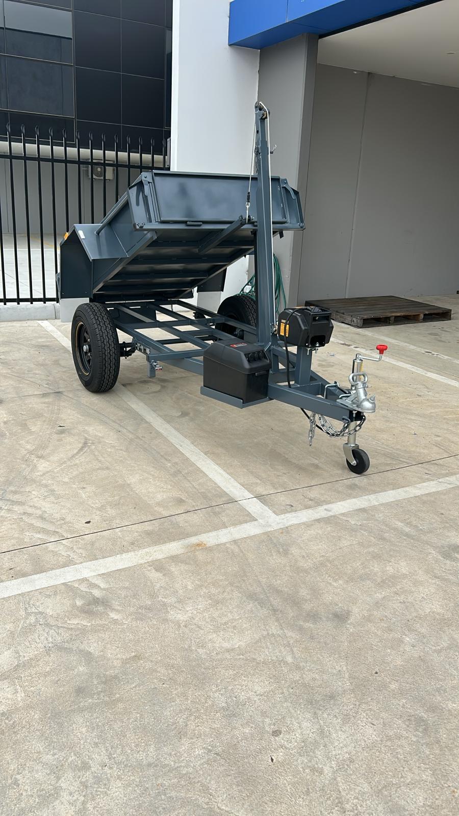 Effortlessly unload soil, gravel, or waste with the power of a hydraulic lift system.